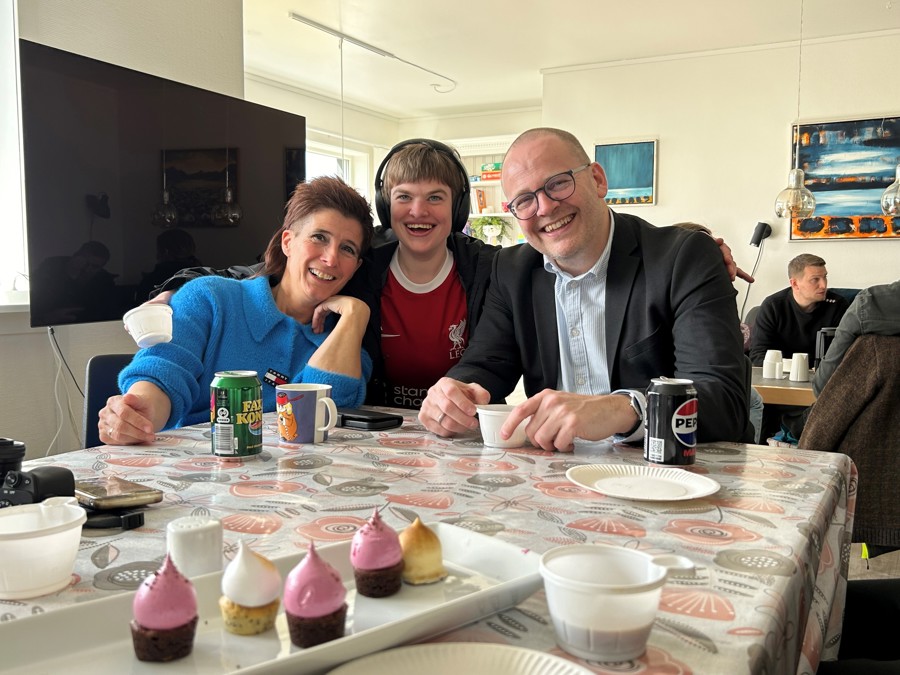 Tað vóru fegnir handverkarar, sum fingu ein bita frá Landsverki. Tað vóru eisini glaðir næmingar, sum sungu og undirhildu. Tey hava fylgt neyvt við í byggingini, sum fer at tvífalda skúlan.
